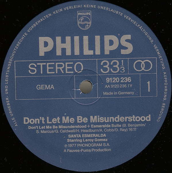 Santa Esmeralda Starring Leroy Gomez – Don’t Let Me Be Misunderstood (LP, Album, Pap)