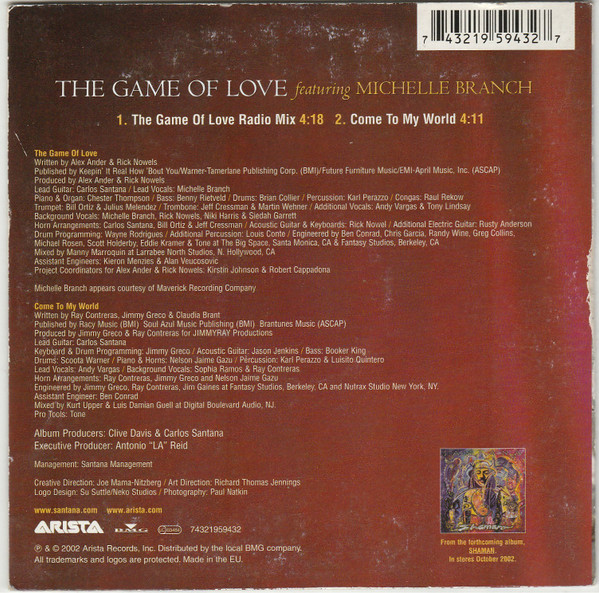 Santana Featuring Michelle Branch – The Game Of Love (CD, Single, Car)
