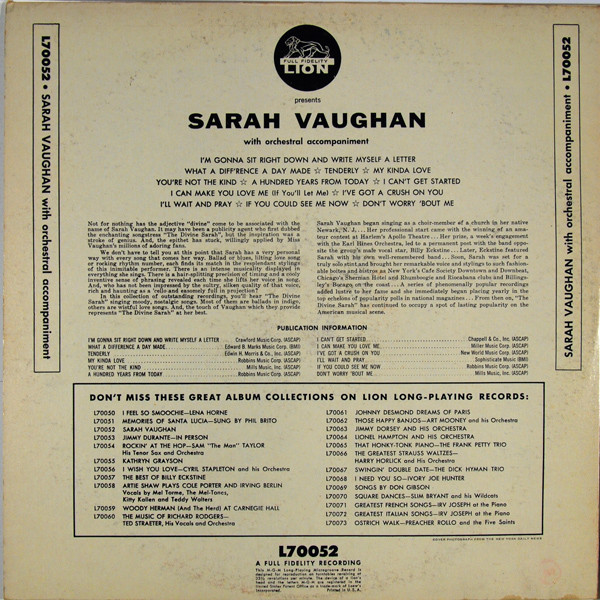Sarah Vaughan – Sarah Vaughan (LP, Comp, Mono)