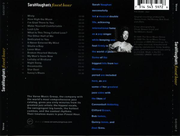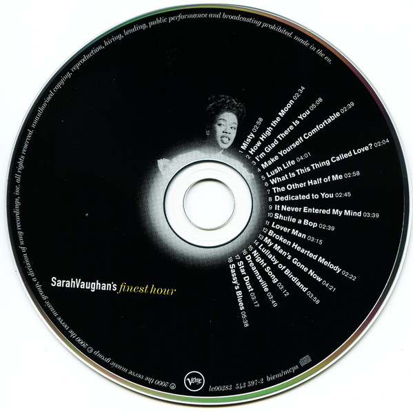 Sarah Vaughan – Sarah Vaughan’s Finest Hour (CD, Comp, RE)