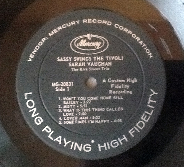 Sarah Vaughan – Sassy Swings The Tivoli (LP, Album, Mono)