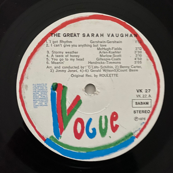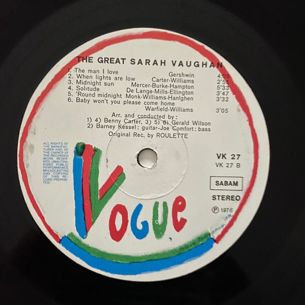 Sarah Vaughan – The Great Sarah Vaughan (LP, Comp)