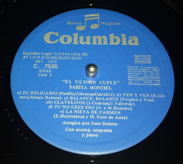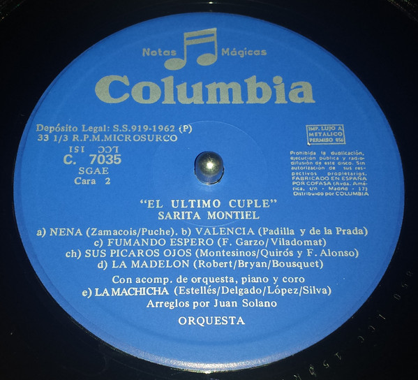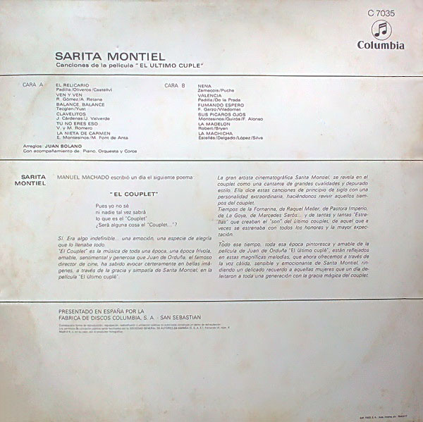 Sarita Montiel* – Canciones De La Pelicula “El Ultimo Cuple” (LP, Album, RE)