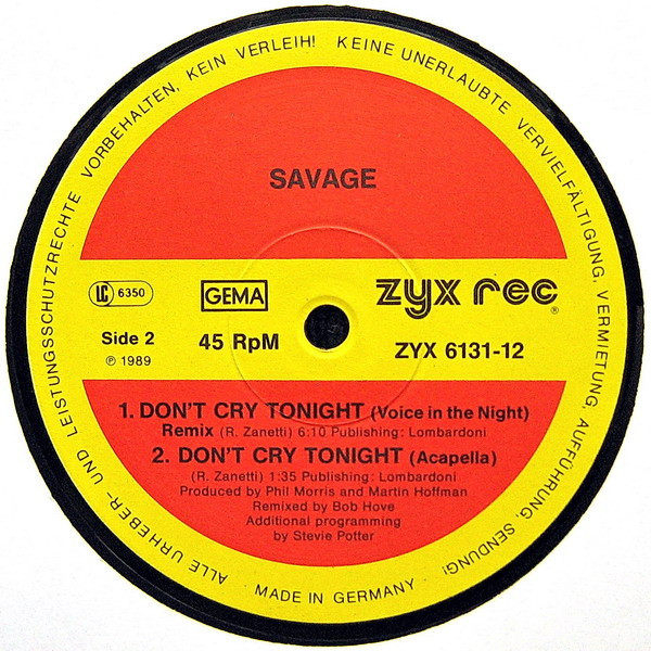 Savage – Don’t Cry Tonight (’89 Version) (12″)