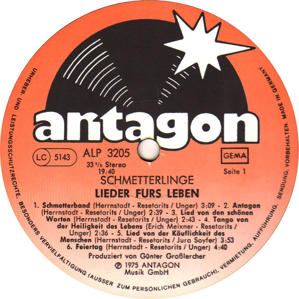 Schmetterlinge – Lieder Fürs Leben (LP, Album)