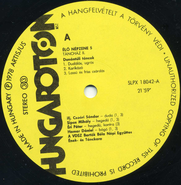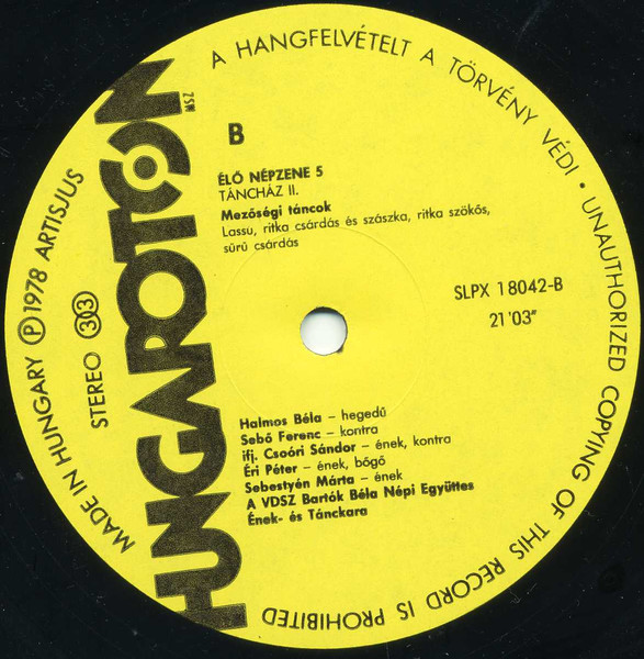 Sebő Ensemble, Muzsikás – Living Hungarian Folk Music 5: Táncház II. (LP, Album)