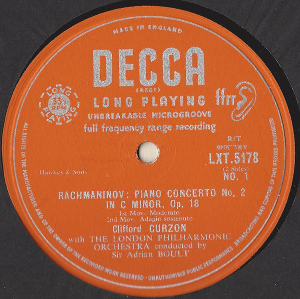 Sergei Rachmaninoff, Clifford Curzon, London Philharmonic Orchestra Conducted By Sir Adrian Boult – Piano Concerto No.2 In C Minor (LP, Mono, RE)