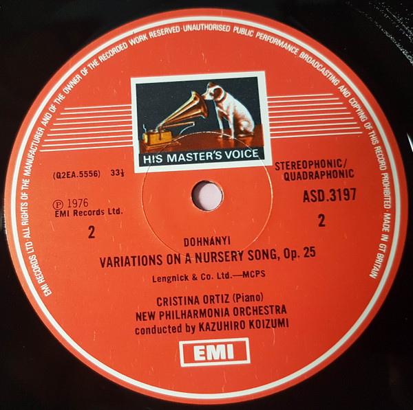 Sergei Rachmaninoff / Ernst von Dohnányi – Cristina Ortiz, New Philharmonia Orchestra, Kazuhiro Koizumi – Rhapsody On A Theme Of Paganini / Variations On A Nursery Song (LP, Quad, RE, col)