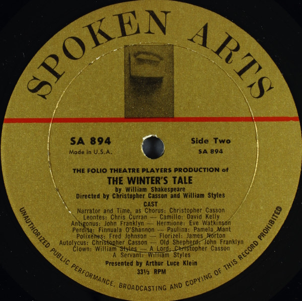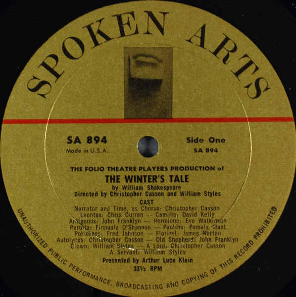 Shakespeare* : Folio Theatre Players Production*, Christopher Casson & William Styles – The Winter’s Tale (LP)