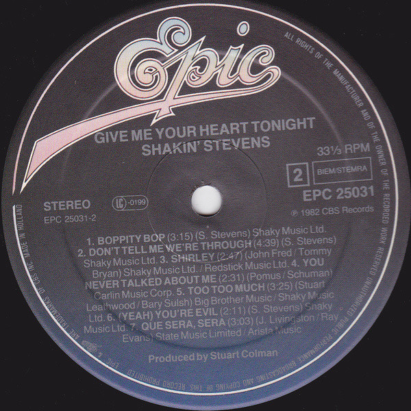 Shakin’ Stevens – Give Me Your Heart Tonight (LP, Album)