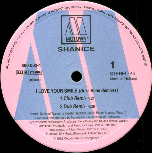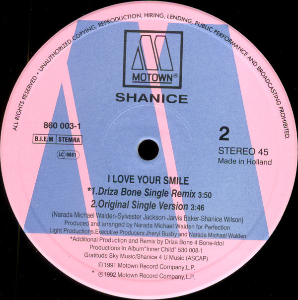 Shanice – I Love Your Smile (Driza Bone Remixes) (12″, Maxi)