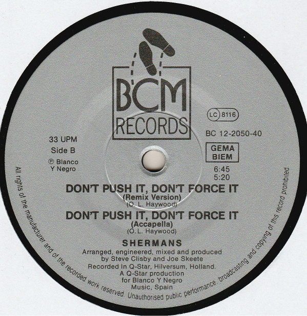 Shermans – Don’t Push It, Don’t Force It (12″)