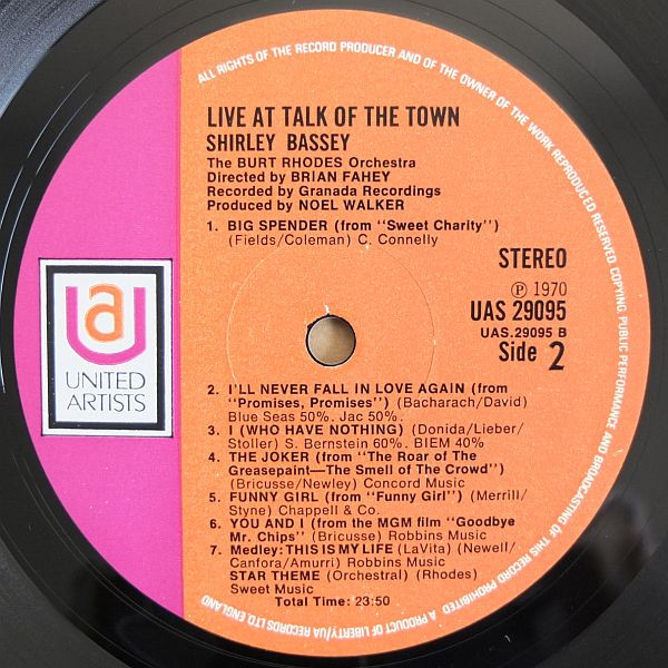 Shirley Bassey – Live At Talk Of The Town (LP, Album)