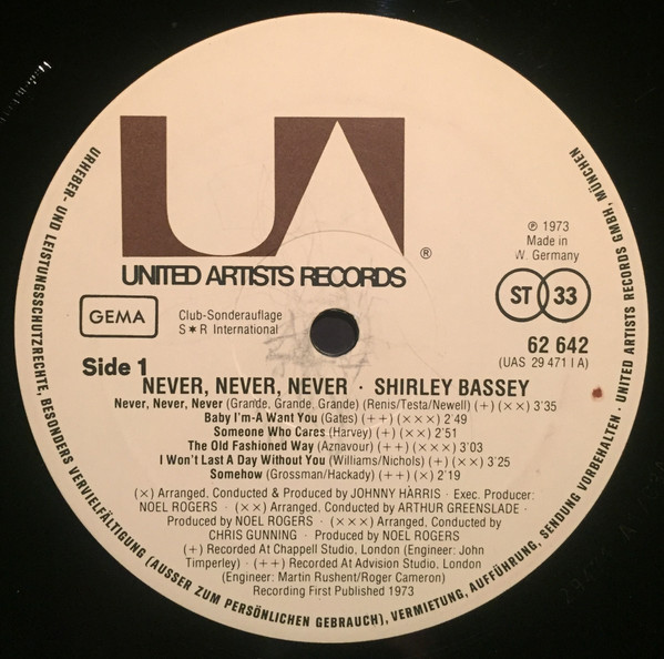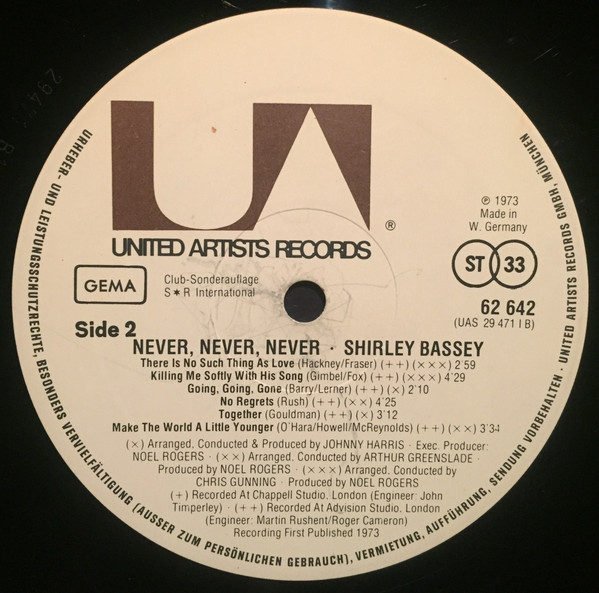 Shirley Bassey – Never, Never, Never (LP, Album, Club)