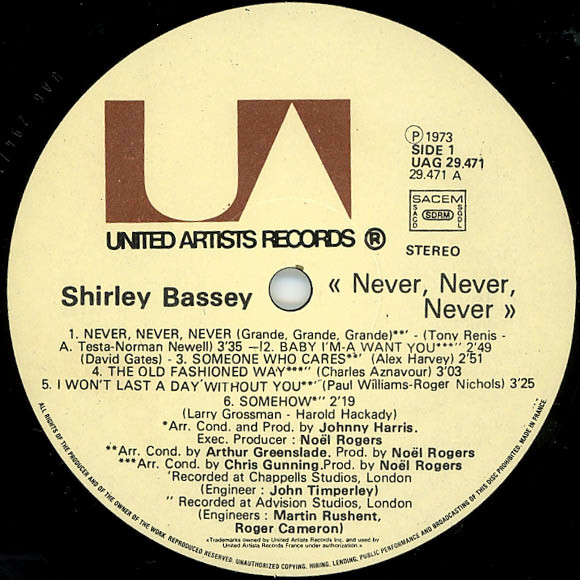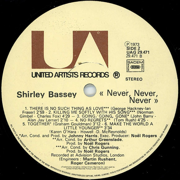 Shirley Bassey – Never Never Never (LP, Album, Gat)