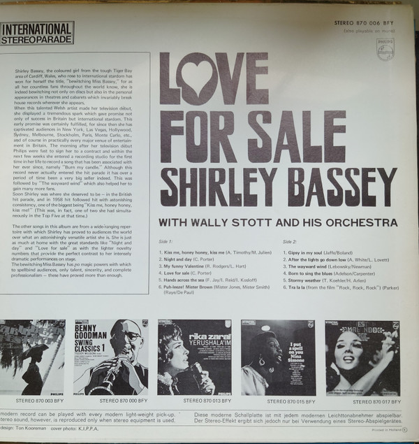 Shirley Bassey With Wally Stott And His Orchestra* – Love For Sale (LP, Comp)