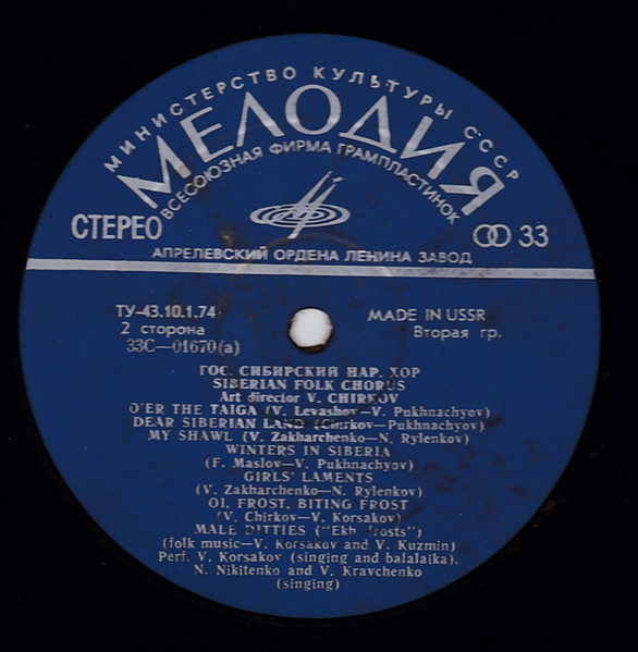 Siberian Russian Folk Chorus – Vladimir Chirkov – Siberian Russian Folk Chorus (LP)