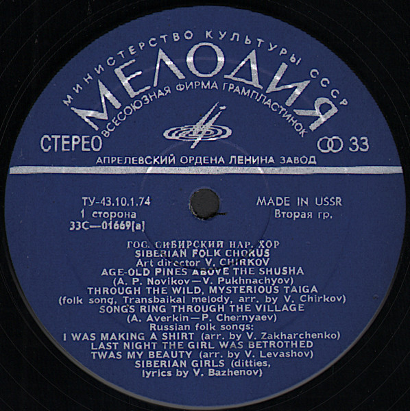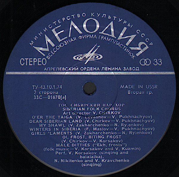 Siberian Russian Folk Chorus – Vladimir Chirkov – Siberian Russian Folk Chorus (LP)