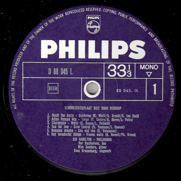 Sid Hamilton – Dance, Philicorda, Dance (LP, Album, Mono, Promo)