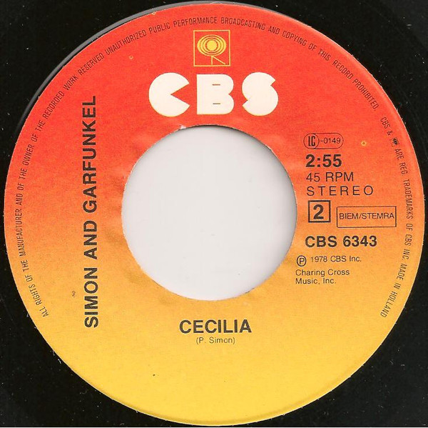 Simon & Garfunkel – Bridge Over Troubled Water / Cecilia (7″, Single, RE)