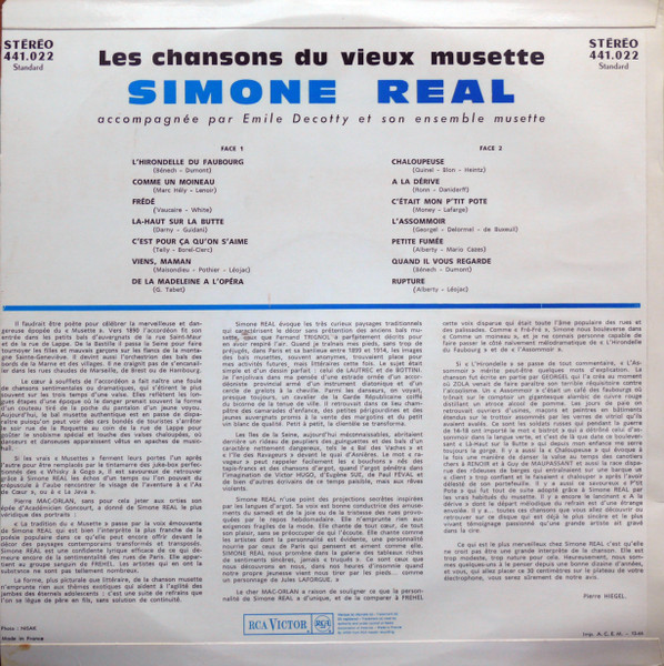 Simone Real – Les Chansons Du Vieux Musette (LP, Album)