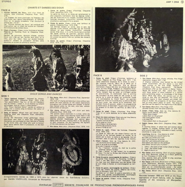 Sioux (3) – Chants Et Danses Des Sioux (LP)
