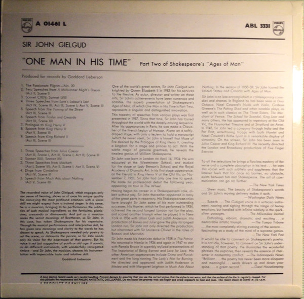 Sir John Gielgud* – Part Two Of Shakespeare’s “Ages Of Man” One Man In His Time (LP, Mono)
