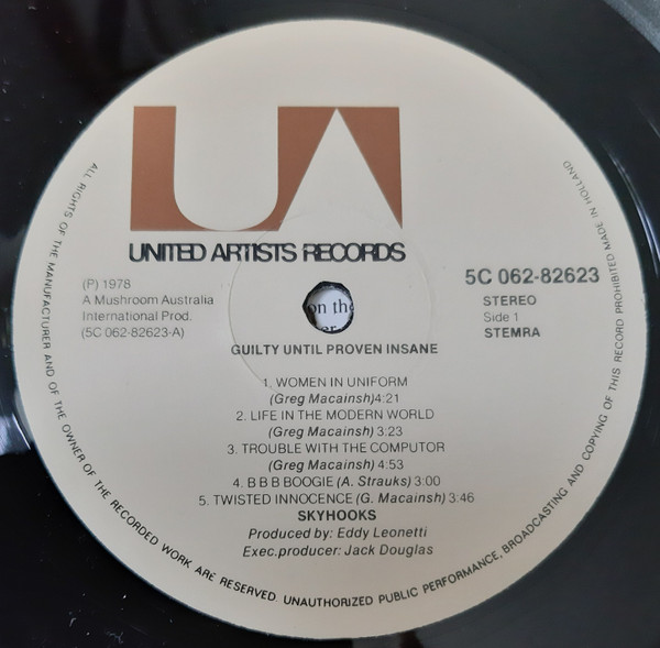 Skyhooks – Guilty Until Proven Insane (LP, Album)