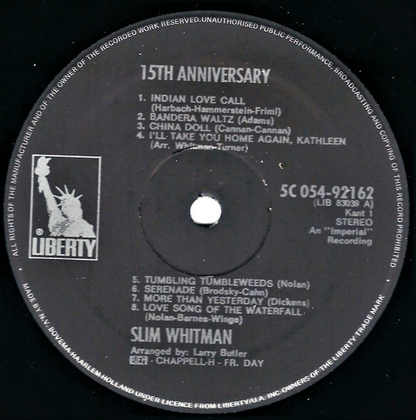 Slim Whitman – 15th Anniversary (LP, Album, RE)