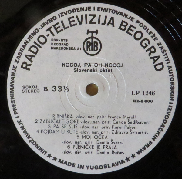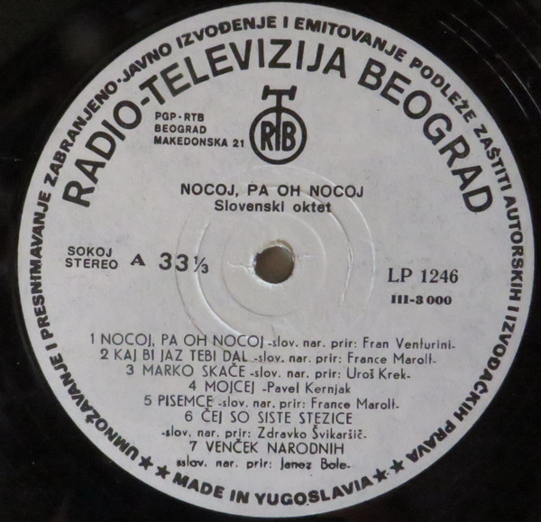 Slovenski Oktet – Nocoj, Pa Oh Nocoj (LP, Comp, RE)