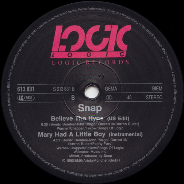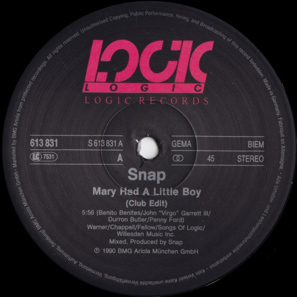 Snap! – Mary Had A Little Boy (12″, Maxi)