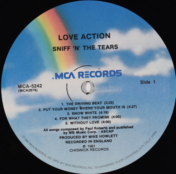 Sniff ‘n’ The Tears – Love Action (LP, Album, Pin)
