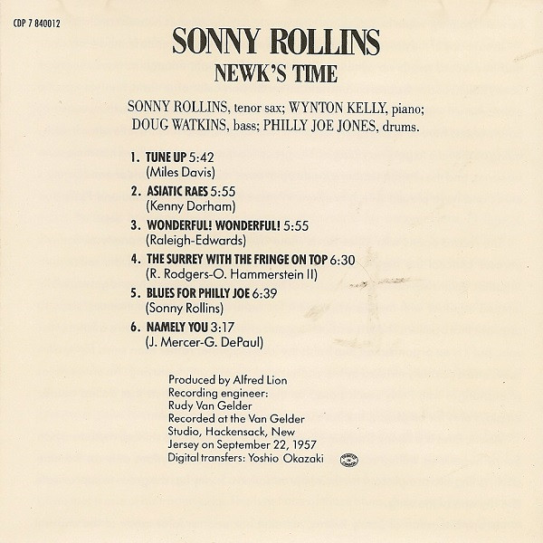 Sonny Rollins – Newk’s Time (CD, Album, RE, Cap)