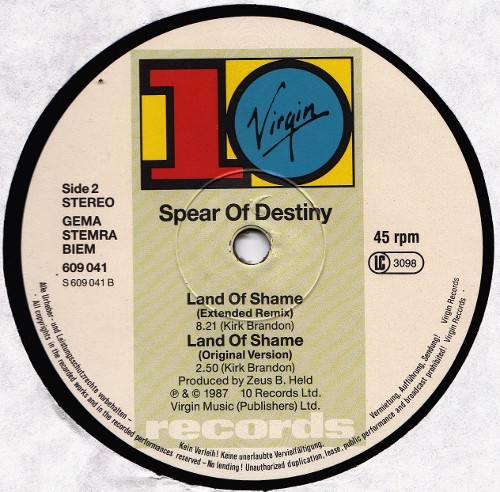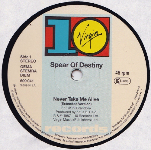 Spear Of Destiny – Never Take Me Alive (12″, Single)