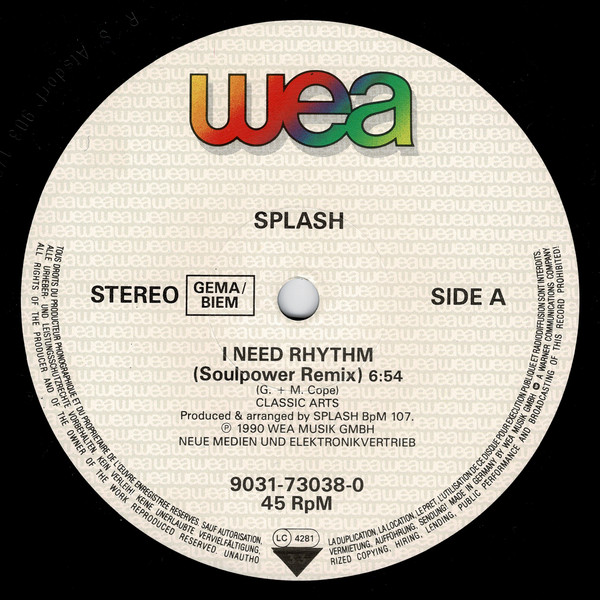 Splash (3) – I Need Rhythm (The Session Remixes) (12″)