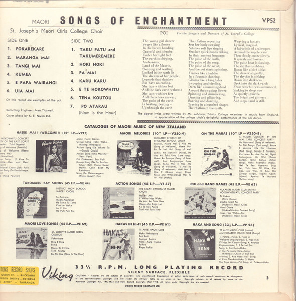 St. Joseph’s Maori Girls College Choir – Maori Songs Of Enchantment (LP, Album)