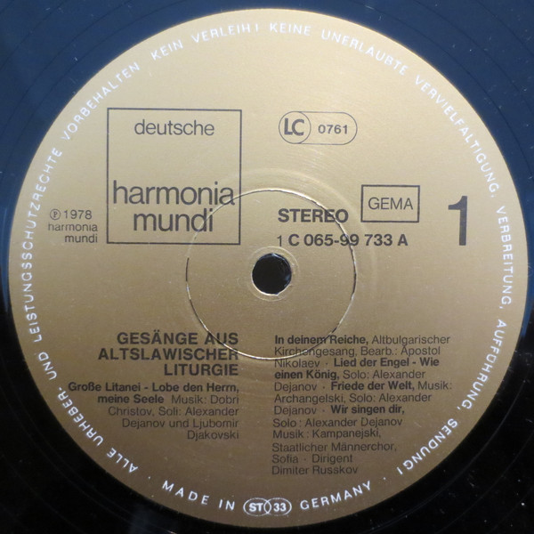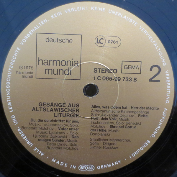 Staatlicher Männerchor Sofia · Dimitre Rouskov – Gesänge Aus Altslawischer Liturgie (LP)