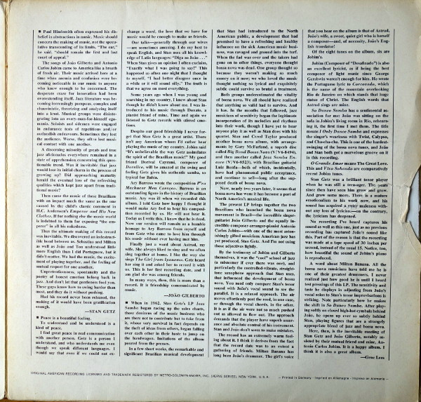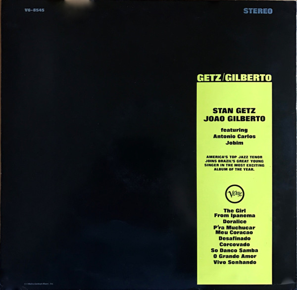 Stan Getz / João Gilberto Featuring Antonio Carlos Jobim – Getz / Gilberto (LP, Album, Gat)