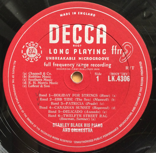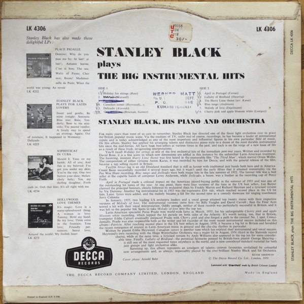 Stanley Black – Plays The Big Instrumental Hits (LP, Album, Mono)