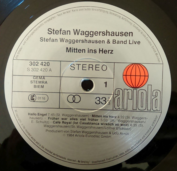 Stefan Waggershausen & Band – Live: Mitten Ins Herz (2xLP, Album, Gat)