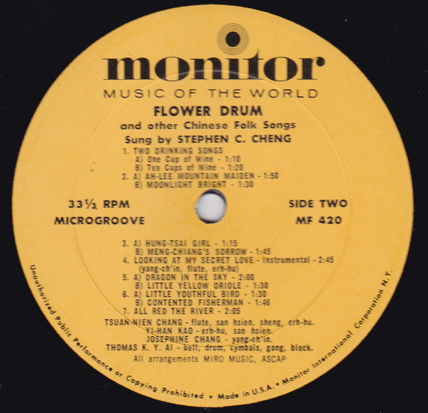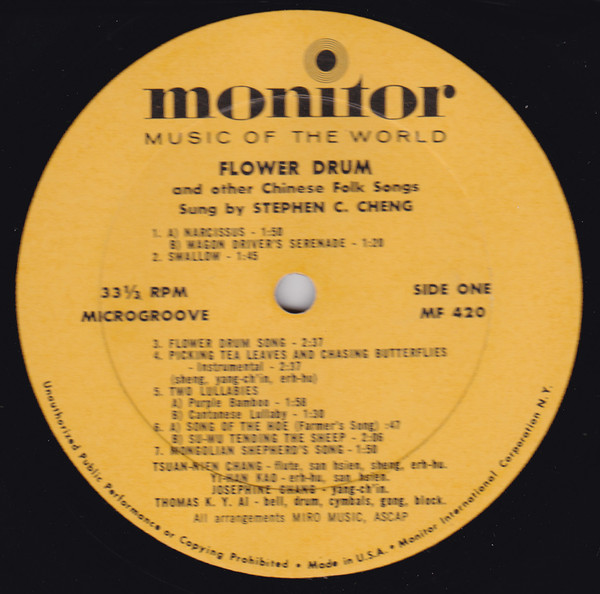 Stephen Cheng* – Flower Drum And Other Chinese Folk Songs (LP, Album, Mono)