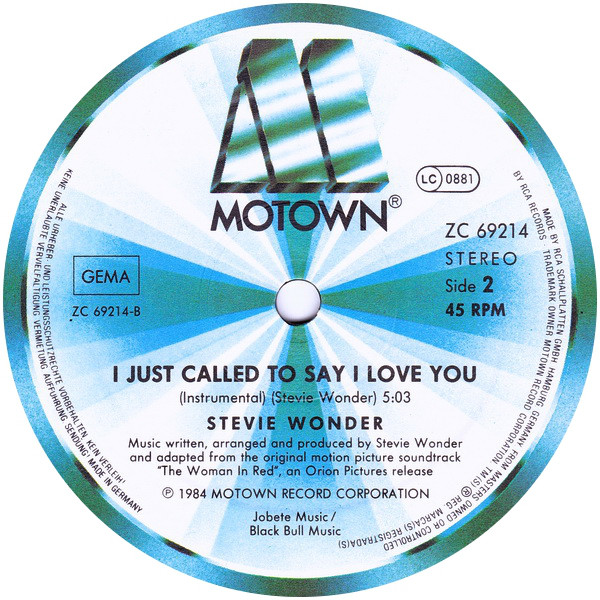 Stevie Wonder – I Just Called To Say I Love You (12″, Maxi, Ext)
