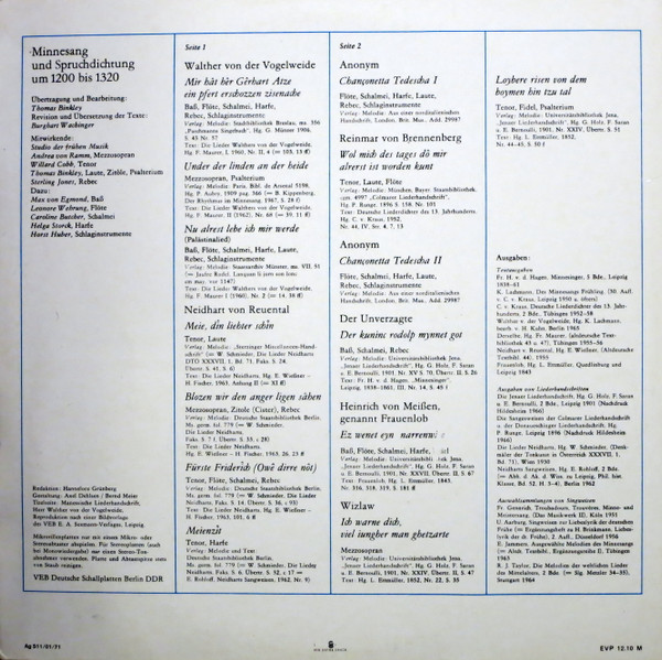 Studio Der Frühen Musik – Minnesang Und Spruchdichtung Um 1200-1320 (LP, RE)