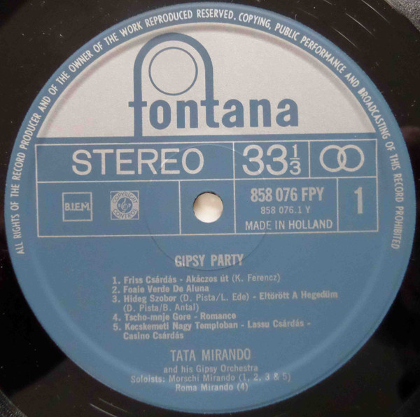 Tata Mirando And His Gipsy Orchestra – Gipsy Party (LP, Album)