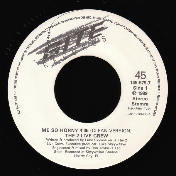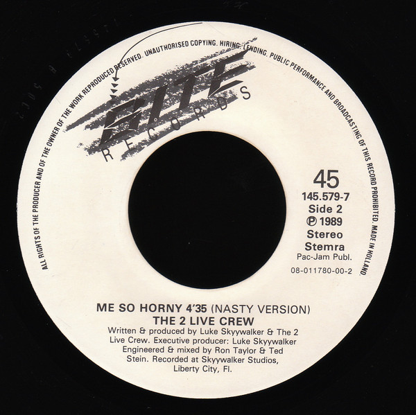 The 2 Live Crew – Me So Horny (7″, Single, Whi)