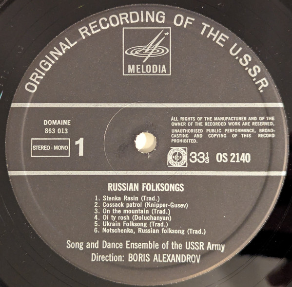 The Alexandrov Red Army Ensemble – Stenka Rasin And Other Famous Russian Folk Songs (LP, Album, Mono)