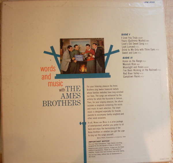 The Ames Brothers – Words And Music With The Ames Brothers (LP, Mono, Ind)