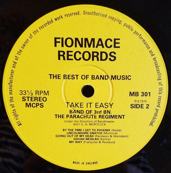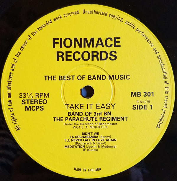 The Band Of The 3rd BN The Parachute Regiment – Take It Easy (LP, Album)