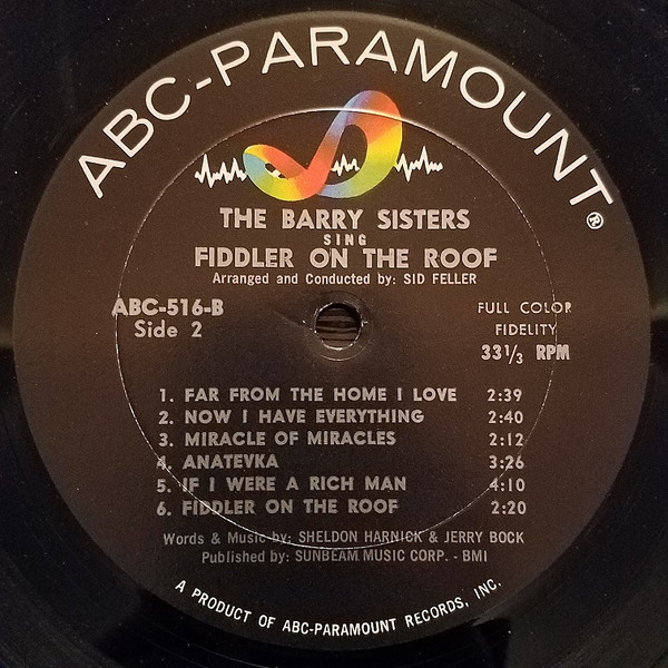 The Barry Sisters – The Barry Sisters Sing Fiddler On The Roof (LP, Album, Mono)