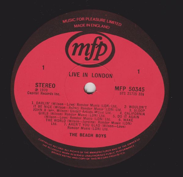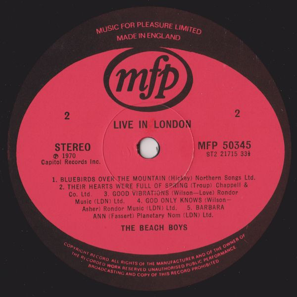 The Beach Boys – Live In London (LP, Album, RE)